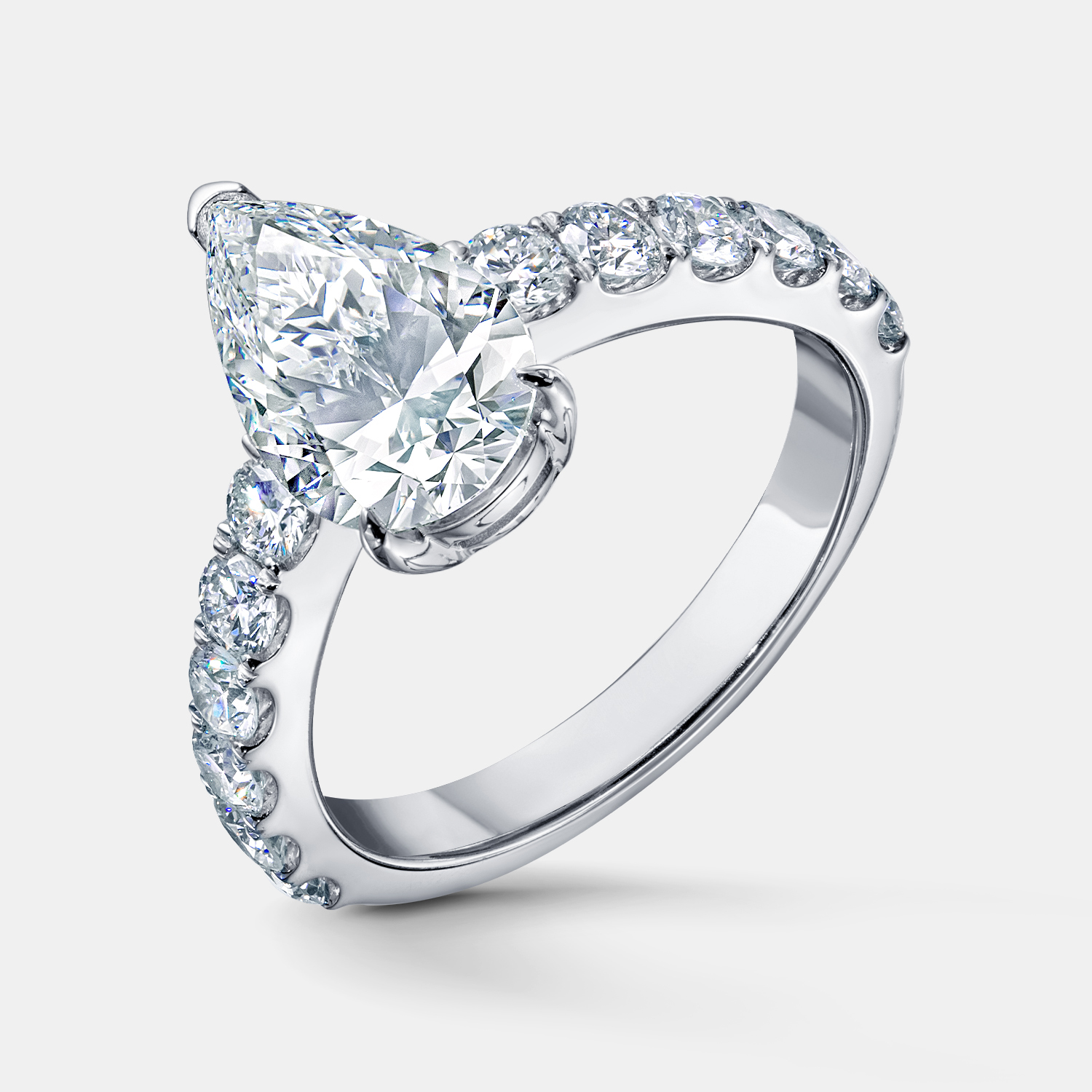 Это кольцо с лабораторно выращенным бриллиантом грушевидной огранки в белом золоте 585 пробы — выбор для тех, кто стремится к выразительности и нестандартной элегантности. Центральный камень в форме капли — символ утончённой женственности и эмоциональной глубины. Его вытянутая форма визуально удлиняет пальцы и придаёт образу особую грацию.
