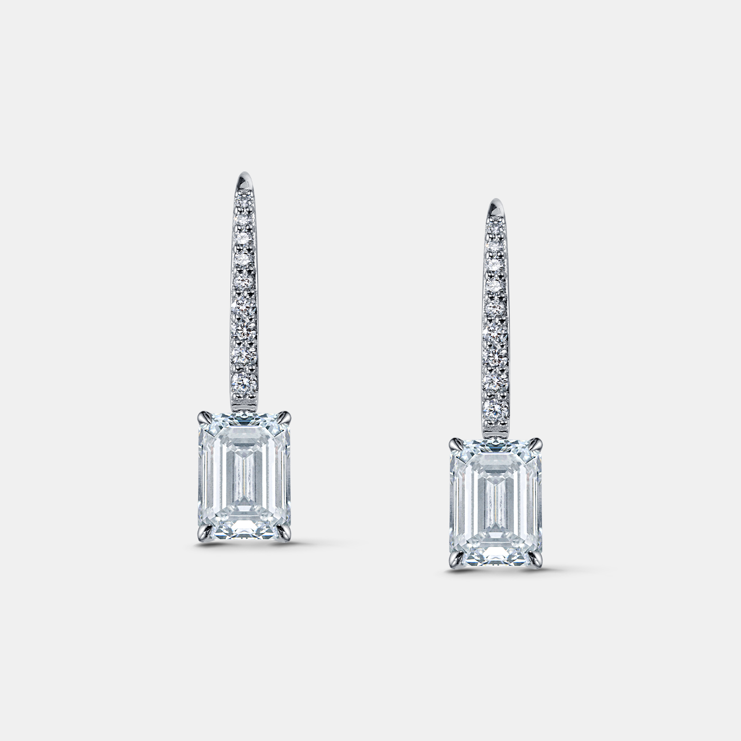 Современная геометрия и архитектурное сияние — эти серьги-подвески из белого золота 585 пробы созданы для тех, кто ценит строгую элегантность. В центре дизайна — лабораторно выращенные бриллианты изумрудной огранки, подчёркнутые чистыми линиями и прозрачной глубиной. Лаконичную форму дополняет деликатная дорожка из мелких бриллиантов вдоль дужки, добавляющая мерцания при каждом движении.