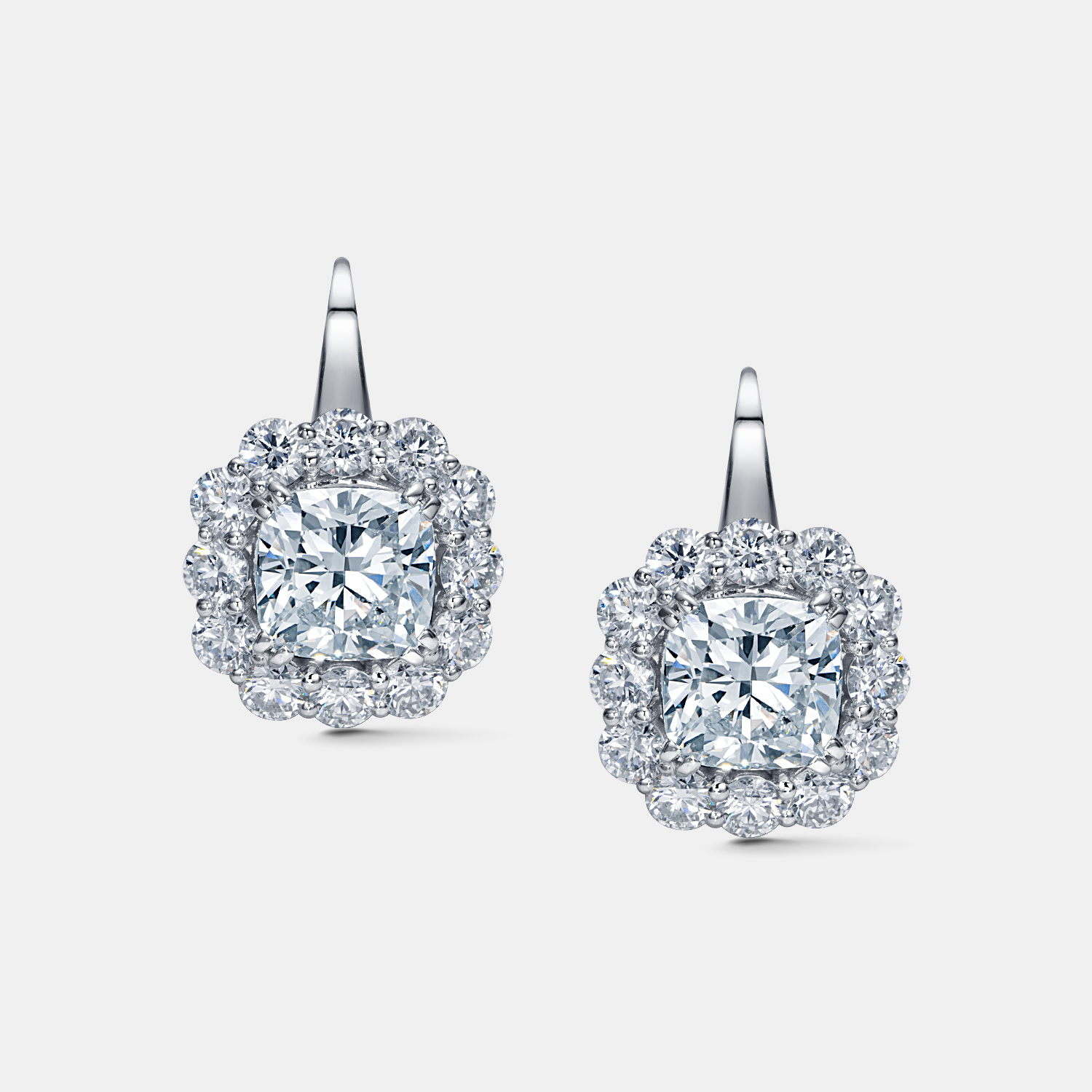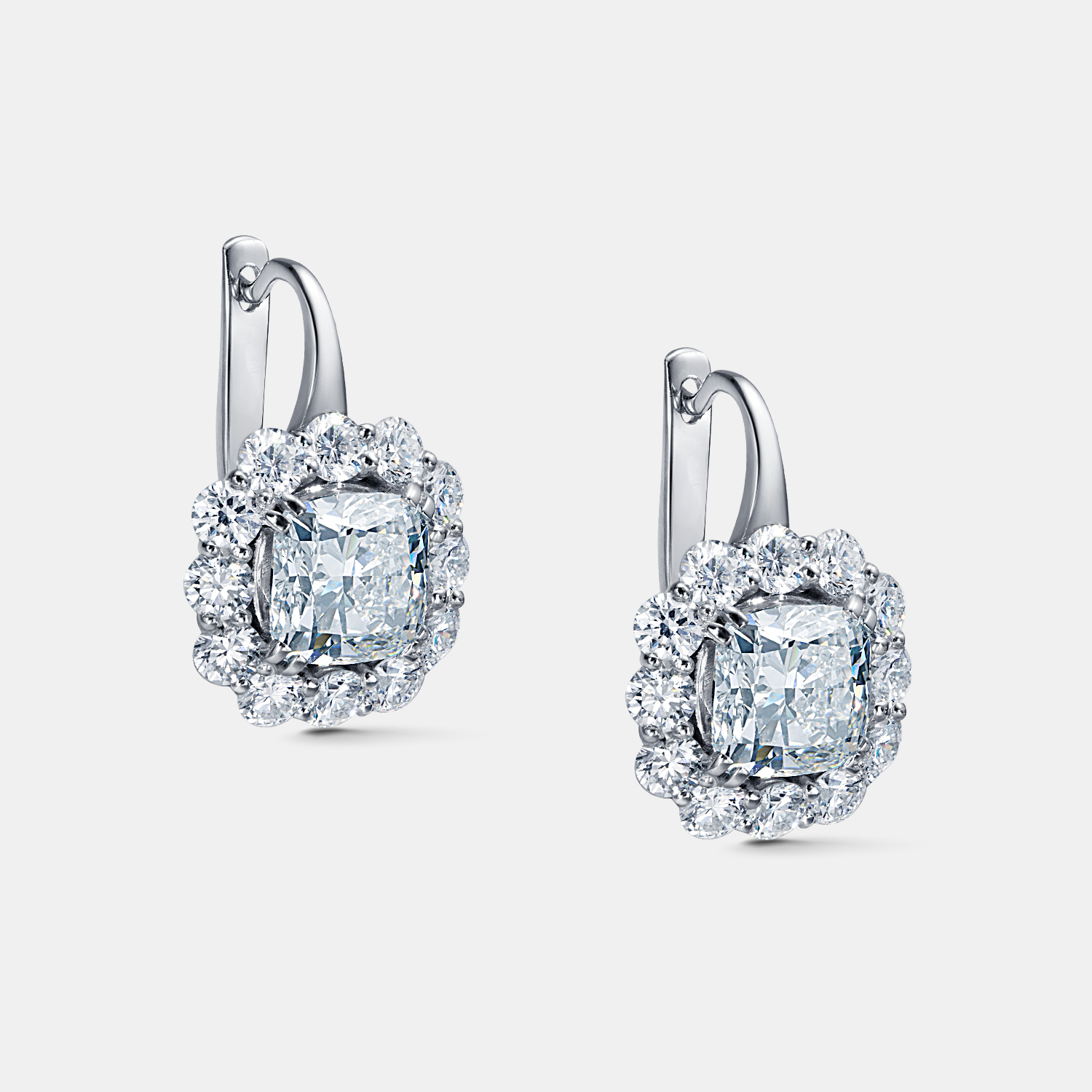 Серьги, которые дарят свет. Эта пара выполнена из белого золота 585 пробы и инкрустирована лабораторно выращенными бриллиантами, идеально огранёнными, чтобы отражать максимум сияния. В центре — выразительные камни кушон-огранки, обрамлённые россыпью круглых бриллиантов, создающих эффект яркой короны из света.
